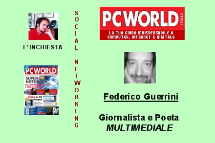 02 Ottobre 2008 Nessuno è “profeta in patria”…per dirla in italiano, ma se fate una ricerca su Google, troverete molto su di lui… Federico Guerrini l’ho conosciuto come Giornalista 2 anni fa, in Comune, è stato il primo che ha pubblicato (sulla Nuova Venezia), un mio articolo. Nato a Milano, vive a Portogruaro dall’età di 9 anni, laureato in Scienze Politiche sta conseguendo una 2 laurea in Lingue. Vi parlo di lui perchè ha fatto un’inchiesta sul mondo della “rete” che trovo molto bella e che può essere utile a molti, una “fotografia” del mondo virtuale oggi…con cui bisogna imparare a convivere! Sotto il link per andare a leggere quello che ha pubblicato su PCWORLD, prestigiosa rivista del settore, e una sua biografia che ho preso dalla rete. G.B. Clicca qui di seguito > http://www.pcworld.it/showPage.php?template=approfondimenti&id=803&sez=in&masterPage=art_sezione_x.htm&pagina=1