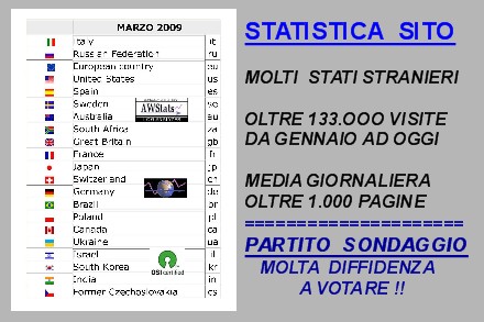 Mentre sto scrivendo sono già più di 133.000 le pagine consultate da inizio anno, con una media giornaliera sopra le 1.000 consultazioni e con punte di oltre 2.000, mentre nei primi 6 giorni di Maggio ho già superato quota 10.000 !!, con una media di 1.674 pagine al giorno !! GRAZIE…