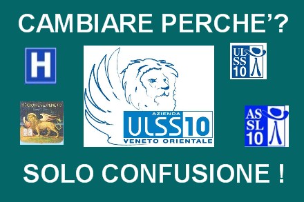 Ho fatto un giro nella rete e nel sito ufficiale della Azienda ULSS 10, e ho trovato di tutto, inteso come sigle, AUSSL 10, ASL 10, USL 10, ASSL 10, ULSS 10, molti moduli e documenti attuali vengono ancora proposti con il vecchio logo, una confusione che rispecchia a volte quella organizzativa, molti cambiamenti, ma comunicati male…