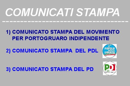 Ho ricevuto e pubblico 2 Comunicati Stampa, il primo del Movimento per Portogruaro Indipendente, che ha per oggetto la Sicurezza e Politica Locale, il secondo del PDL che comunica la nomina dei 2 nuovi Responsabili Elettorali del Partito.