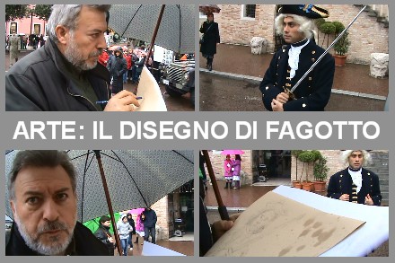 Chi è appassionato di Arte lo conosce di sicuro, Fagotto è un personaggio particolare, lo conosco da una vita, in quanto portogruarese, ma non ci avevo mai parlato insieme, più volte l’ho visto disegnare “in presa diretta” per la Città, e così è stato anche questa volta, tutto nato per caso, sotto la pioggia in una piazza “viva” che ha ispirato l’artista, quasi obbligato a fermare con la matita quel momento di vita…