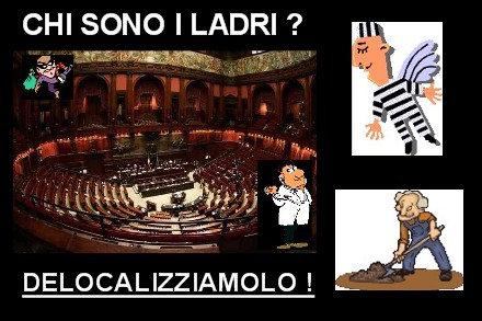 Parliamo dei soldi che i Partiti si mettono in tasca, non so come chiamarla, “ruberia” legalizzata, “furto” autorizzato, o semplicemente “associazione a delinquere” tollerata, in qualunque modo vogliamo ettichettarla, siamo di fronte a “gente” che spende 1 e riceve 5, assurdo!, e non sto parlando di “noccioline”, la Lega Nord, ad esempio, nell’ultima campagna elettorale ha speso 3 milioni di euro e ne ha ricevuti indietro, come rimborso, ben 41 milioni di euro!!