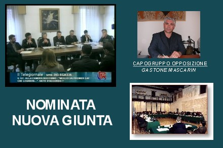 Purtroppo mancano i video della presentazione perchè qualcuno si è “dimenticato” di avvisarmi, e meno male che la Comunicazione la si vuol porre in primo piano!, intanto nell’Opposizione è stato eletto il capogruppo del Pdl, si tratta di Gastone Mascarin… G.B.