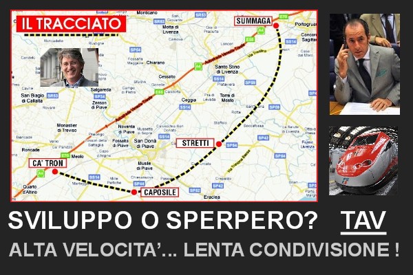 Grande divisone delle forze politiche sul Tracciato della TAV, il Pd esce con un documento unitario contro la “litoranea”, meglio l’affiancamento con l’A4, così cambia idea e si “adegua” il sindaco Luigino Moro di San Stino, Mercoledì prossimo previsto anche un vertice del Centrodestra con Renato Chisso…