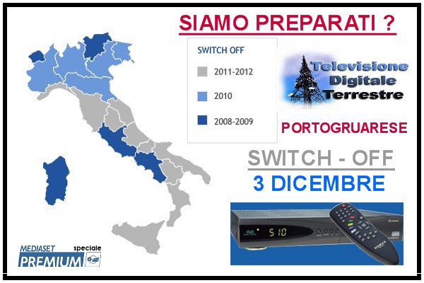 Mancano pochi giorni al cosiddetto SWITCH OFF in Veneto, e ancora non ho visto una adeguata campagna di informazione da parte della Regione, ma nemmeno del Comune di Portogruaro, quelle poche informazioni che girano sono incomplete, in alcuni casi anche tecnicamente sbagliate !