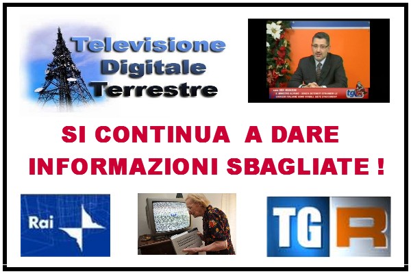 DIGITALE TERRESTRE: SI CONTINUA A DARE INFORMAZIONI SBAGLIATE !