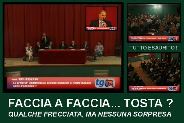 Cinema Verdi esaurito in ogni ordine di posto, parecchia gente in piedi, e serata che è scivolata via senza accorgersi, o meglio, senza annoiarsi, merito molto più della verve di Gigi Di Meo, che dei 7 Candidati Sindaco, che al di là di qualche “scaramuccia” tra le varie “anime” del PDL e Lega, tutti si sono mantenuti piuttosto prudenti…