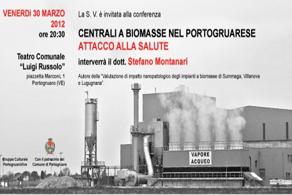 Stasera al Teatro Russolo di Portogruaro, il dott. Stefano Montanari, Direttore scientifico del Laboratorio NANODIAGNOSTICS di San Vito (Modena), e autore della Valutazione d’impatto nanopatologico degli impianti a biomasse previsti a Summaga di Portogruaro, Villanova di Fossalta di Portogruaro e Lugugnana fraz.di Portogruaro, ci illustrerà e spiegherà i risultati a cui è pervenuto dal suo studio su quelle che saranno le possibili conseguenze inquinanti e sanitarie nel Portogruarese con le Tre Centrali a Biomassa in piena funzione…