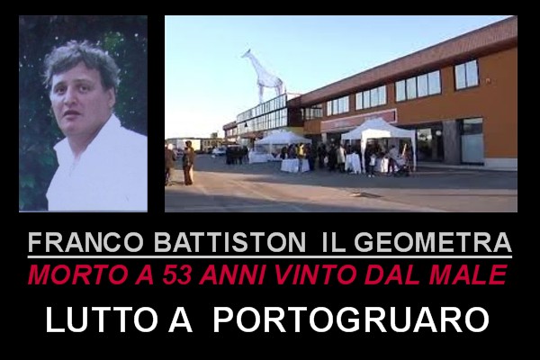PORTOGRUARO. Una giornata che sembrava primaverile ha accompagnato nel suo ultimo viaggio terreno Franco Battiston, geometra di 53 anni, deceduto la notte di Natale all’ospedale dell’Angelo di Mestre. Da qualche tempo soffriva di problemi di salute, aggravatisi irreparabilmente nell’ultimo mese e mezzo per una malattia del sangue.