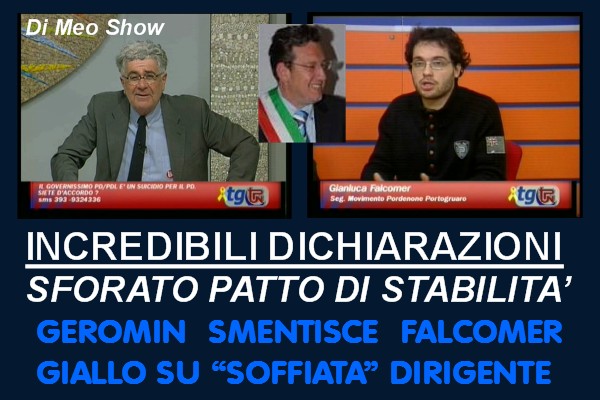 Ecco subito la pronta replica del sindaco Marco Geromin, un “botta e risposta” la definisce Gigi Di Meo, ma per me è molto di più, perchè Geromin smentisce di aver mai sforato il Patto di Stabilità del suo Comune, ma Di Meo, che ingenuo non è, fa sapere che il Consigliere Gianluca Falcomer, ricontattato, conferma quanto detto durante il TG, e che la sua “fonte” è un Dirigente Comunale che Concordia e Cinto hanno in condivisione !