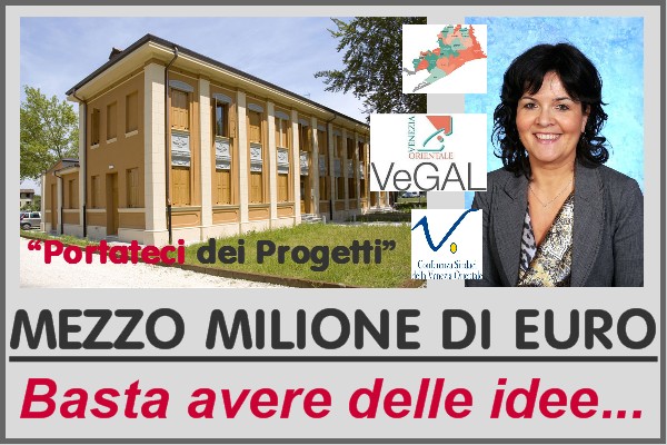 Nel leggere oggi il Comunicato stampa di VeGAL (clicca qui) , passato il momento di piacere nell’apprendere che ci sono quasi 500 mila euro a disposizione dei Comuni del Veneto Orientale per riqualificare e sviluppare il Territorio, mi sono reso conto delle “mancanze” e mancate presentazioni di Progetti adeguati, commessi in precedenza dalle varie Amministrazioni.