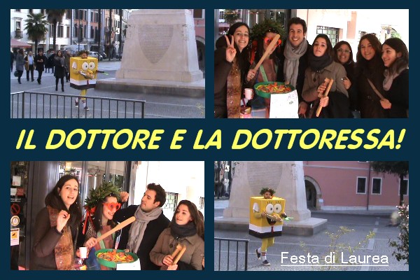 Due neo dottori vengono dagli amici in coro, simpaticamente “incoraggiati”…