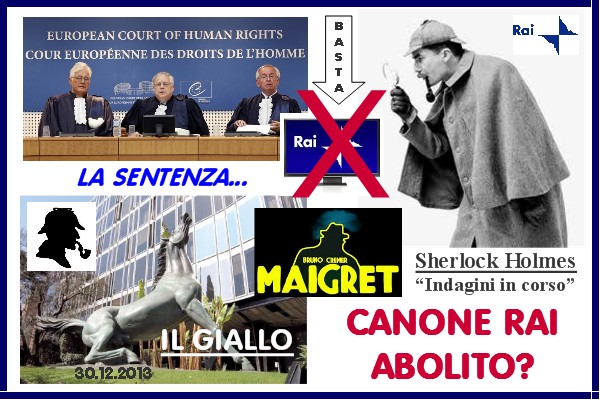 La Corte Europea dei Diritti dell’Uomo, il 30 dicembre 2013 ha emesso una Sentenza contro il Governo Italiano a cui dava torto sull’obbligo del pagamento del Canone RAI imposto a un cittadino di Lecce che si era visto sigillare i televisori di casa al suo rifiuto di questa iniqua tassa.