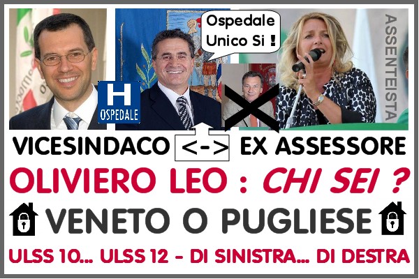 Infine andiamo a vedere dove vive Oliviero Leo, nato a  Vernole (Lecce) il 14.02.1955, dunque 58enne pugliese, che si trova in Veneto dal 1974, si è laureato in medicina in quel di Padova, e stando a quanto ha riportato sul Documento pubblico della sua situazione patrimoniale (clicca qui) , ha mantenuto la residenza  in Puglia,  ma abita in Veneto a Padova, mentre come sappiamo lavora nel veneziano !