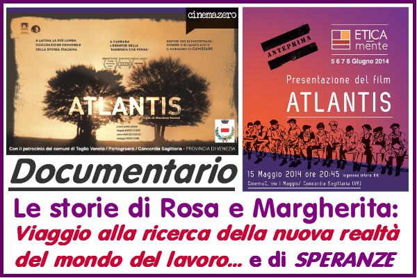 Il documentario racconta la storia di due donne molto speciali che reagiscono in modo virtuoso e non convenzionale alla crisi economica e morale che stiamo vivendo. La prima è Rosa, un’operaia della fabbrica “Tacconi Sud” di Latina, che conduce 28 sue colleghe ad una resistenza attiva e civile, occupando per 550 giorni la fabbrica in cui lavoravano da più di 20 anni. La loro lotta nasce dopo aver ricevuto delle raccomandate di licenziamento alla vigilia di natale del 2010, senza nessuno preavviso da parte della proprietà e senza la liquidazione di tutte le loro spettanze. Abbiamo seguito la vita di queste donne all’interno dello stabilimento, documentato il loro modo davvero civile e originale di combattere questa battaglia, all’interno di una fabbrica tenuta in vita dopo l’abbandono dei proprietari. Rosa ha tenuto un diario di questa occupazione su Facebook, un diario ricco di riflessioni e pensieri, che è diventato una sorta di diario di bordo pubblico della nostra crisi, dalla cabina occupata del Titanic in cui sembra di vivere nel corso di questi ultimi anni. Mi chiamo Rosa Giancola, sono un’operaia della Tacconi Sud. Questa è la seconda notte di presidio all’interno della fabbrica. La prima è passata in bianco, con lo sguardo sempre verso il cancello per paura di uno sgombero con la forza. Insieme a me le colleghe, qualcuna parla con il figlio più piccolo, e solo come una mamma sa fare spiega a quest’ultimo perché “la mamma non dorme a casa stanotte”. Si salutano dandosi il bacio della buonanotte per telefono. Non avevamo mai ascoltato la nostra fabbrica di notte: un silenzio irreale avvolge il luogo dove ogni giorno per 19 anni abbiamo lavorato e condiviso le nostre vite. Siamo qui nella speranza che questo gesto pieghi l’incuranza e la strafottenza del nostro datore di lavoro ai suoi doveri di persona per bene! Siamo qui nella speranza di non essere dimenticate(…)penso se riusciremo a resistere, se e per quanto tempo, e se non sarà stato inutile tutto questo. Affido queste righe a facebook, e le dedico sopratutto alle mie colleghe. Dedicato a tutte le donne coraggiose. Rosa Emilia Giancola, operaia Tacconi Sud (20 Gennaio 2011) Con queste parole dritte al cuore e poi con una serie di riflessioni e racconti quasi quotidianamente Rosa ha documentato e dato senso alla sua esperienza, balzando agli onori della cronaca anche grazie all’attenzione della televisione italiana, nelle cui trasmissioni di approfondimento è stata più volte ospite per raccontare la sua esperienza e la sua idea in merito al periodo che stiamo vivendo. L’altra donna davvero speciale protagonista del nostro documentario è Margherita, imprenditrice e titolare della Fabbrica Dogliani di Carrara, che ha deciso di seguire un diverso modello imprenditoriale, basato su un rapporto civile con i propri dipendenti, a cui viene anche data la possibilità di partecipare a laboratori culturali e di partecipare all’organizzazione di un festival che si svolge nel parcheggio della fabbrica ormai da 6 anni. “Questa fabbrica sforna dolci e produce pensiero” recita lo slogan scritto all’ingresso della fabbrica, uno slogan che riassume in modo chiaro il pensiero e l’obiettivo di Margherita. Queste due donne si incontrano, dapprima su Facebook (dove Margherita legge ed apprezza il diario di Rosa) e poi ognuna visita la fabbrica dell’altra con conseguenti riflessioni e sensazioni. Un viaggio alla ricerca della nuova realtà del mondo del lavoro, alla ricerca di esempi e di speranze. Un viaggio per scoprire… ATLANTIS!