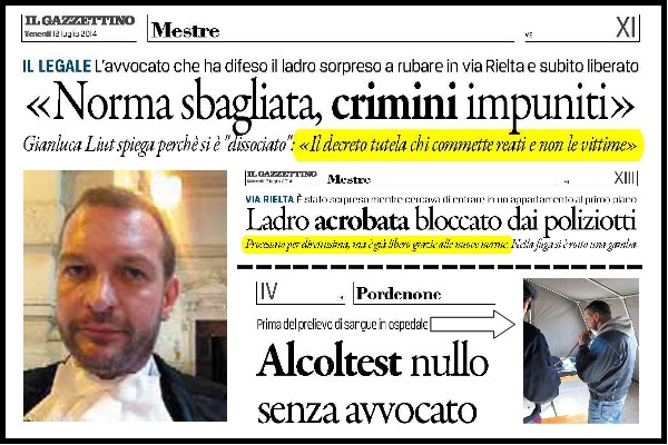 Quindi commettere un reato, essere processato e tornare libero in poche ore diventerà prassi. Per far capire come funzionano le cose Liut illustra cosa è successo con l’albanese dell’altro giorno del quale lui era l’avvocato d’ufficio.
