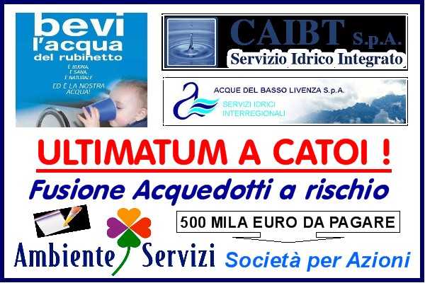 CATOI sta per “Consulta d’Ambito per il Servizio Idrico Integrato nell’Ambito Territoriale Interregionale Lemene“, cui fanno riferimento gli Acquedotti di ABL e CAIBT, e di cui si è tanto sbandierata la fusione, giunta quasi all’atto finale, e ora quel quasi rischia di rimanere tale, visto che nessuno vuole pagare !