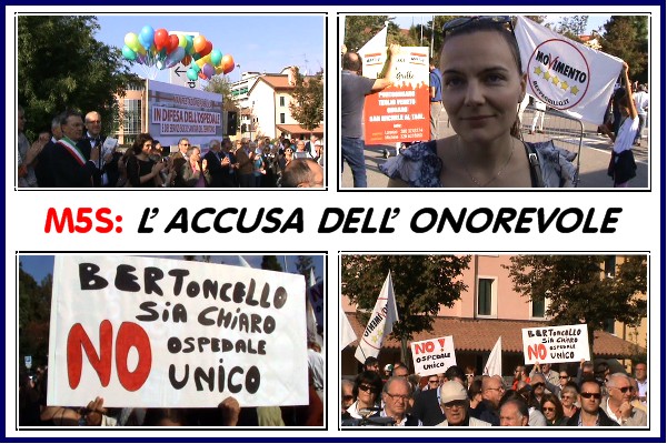 Presenza massiccia dei militanti del Movimento 5 Stelle provenienti da più Comuni, con un cartello anche gli “amici” di Beppe Grillo di Portogruaro, Teglio Veneto, Gruaro e San Michele al Tagliamento , lo slogan in bella evidenza era “No ospedale unico – Bertoncello sia chiaro”…