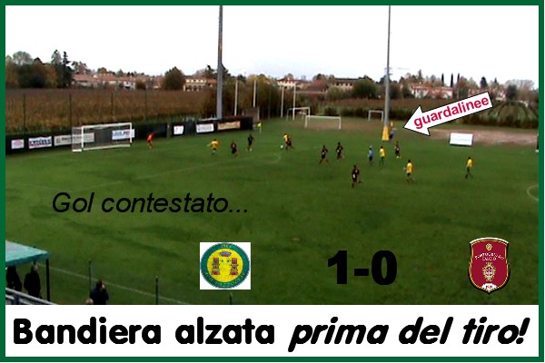 Gol contestato: Guardalinee con la bandiera alzata prima del tiro !