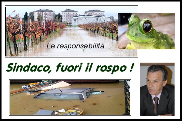 Caro Sindaco, fuori il rospo, e ci dica bene la verità e le responsabilità di un sistema di governo tra Comune, Provincia, Regione , con Consorzi di bonifica e Genio civile che fa “acqua da tutte le parti”, basta chiacchiere, che lo sapete bene…