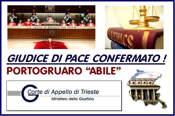 Finalmente si è fatta chiarezza sulla permanenza del Giudice di Pace a Portogruaro, ieri a Trieste sono stati resi noti e illustrati dati e percentuali dal presidente della Corte d’Appello di Trieste, Mario Trampus, alla vigilia della Cerimonia di inaugurazione del nuovo Anno Giudiziario, in programma questa mattina dalle 9 nell’aula della Corte d’Assise in Tribunale a Trieste.