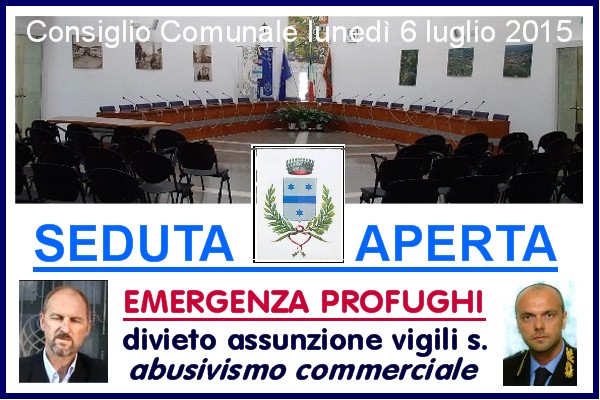 Si informa che il Consiglio comunale è convocato eccezionalmente in forma di ADUNANZA APERTA, presso la sala consiliare, per il giorno di LUNEDI’ 6 LUGLIO 2015 alle ore 20.00 per trattare i seguenti temi: