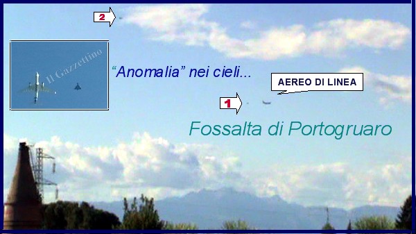 Dallo Stadio comunale di Fossalta di Portogruaro, si è visto un grosso aereo di linea “scortato” da vicino da 1 caccia e da più lontano e in alto da un secondo velivolo che li “osservava”…