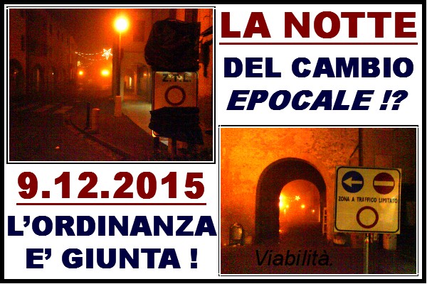 Per adesso mi fermo qui, vi dico solo che ieri notte sono andato in Centro per vedere e filmare questo passaggio epocale, pensando che allo scoccare della mezzanotte il tanto invocato cambio della Viabilità avvenisse, ma così non è stato, ho trovato solo un po’ di nebbia e preso freddo, c’erano macchine che circolavano nel solito senso di marcia e parcheggiate alla solita maniera, il che mi fa pensare che non ci sarà un orario preciso e si dovrà seguire le indicazioni in loco… (clicca qui)