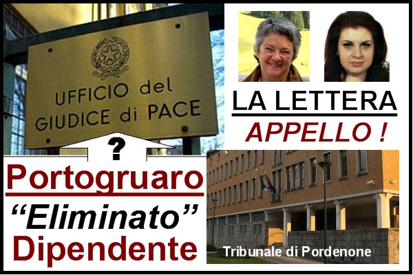 Però a monte c’è una richiesta del Giudice di Pace Coordinatore, avv. Anna Salice che in data 5 novembre 2015 chiedeva la sostituzione di uno dei due Dipendenti comunali diciamo per questioni “attitudinali” che non favorivano il pieno sviluppo dell’attività lavorativa/produttiva dell’Ufficio, ma era una richiesta a “lungo termine”, senza sapere allora le intenzioni di chiusura da parte dell’Amministrazione comunale di Portogruaro.
