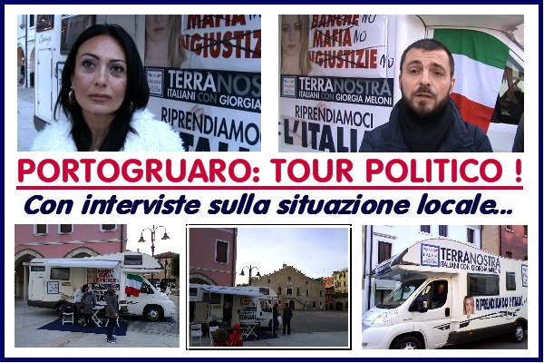 Sabato 6 febbraio 2016 in Piazza della Repubblica a Portogruaro ha sostato il camper di “Terra Nostra”  italiani con Giorgia Meloni, che sta affrontando un Tour che si concluderà il 28 febbraio a Napoli,  contro il salvataggio insensato delle Banche, presente anche il deputato Walter Rizzetto, vicepresidente della Commissione Lavoro alla Camera, che appoggia questo nuovo Comitato e contenitore di idee che si affianca a Fratelli d’Italia – Alleanza Nazionale, e che in altra pagina documenterò con delle interviste.