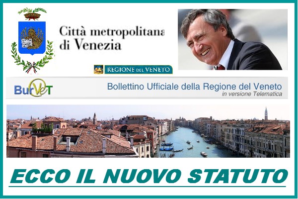La Conferenza metropolitana  composta da 44 Sindaci (clicca qui) il 21 gennaio scorso ha approvato il nuovo  Statuto della Città metropolitana di Venezia (clicca qui), pubblicato oggi 12 febbraio 2016 nel Bollettino Ufficiale delle Regione Veneto (BUR), e come recita l’articolo 30 che vi ho qui sotto riportato, entrerà in vigore tra 30 giorni esatti dalla sua pubblicazione.