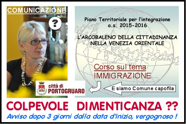 Incredibile e vergognoso è dire poco, visto che si tratta di un previsto Piano Territoriale per l’Integrazione finanziato dalla Regione Veneto e dalle Amministrazioni comunali del Veneto Orientale, e organizzato dal Comune di Portogruaro quale capofila (?!) per il Veneto Orientale !