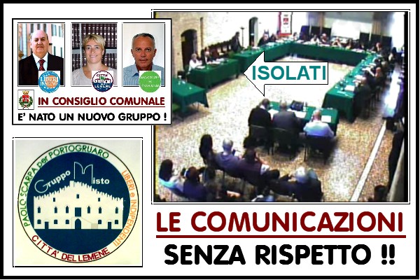 Lo scorso 7 maggio 2016 è pervenuta con Protocollo numero 17.075 una comunicazione da parte dei Consiglieri Gradini Luciano, con riferimento di appartenenza (Lista civica Liberi Insieme), Manzato Alida con riferimento di appartenenza (Lista civica Città del Lemene), e Scarpa Bonazza Buora Paolo con riferimento di appartenenza ( Lista civica Paolo Scarpa per Portogruaro), nella quale vene annunciata la costituzione di un nuovo Gruppo consiliare denominato Gruppo Misto, Liberi e Indipendenti – Città del Lemene – Paolo Scarpa per Portogruaro.