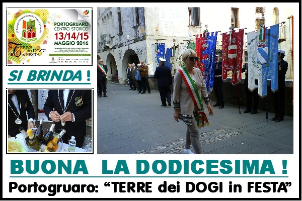 Portogruaro, venerdì 13 maggio 2016, il sindaco Maria Teresa Senatore dichiara aperta la dodicesima edizione di “Terre dei Dogi in Festa”, segue l’immancabile brindisi con tutti i Sindaci e Autorità presenti al suono della Banda musicale di Vado, a cui si sono poi uniti i cittadini…