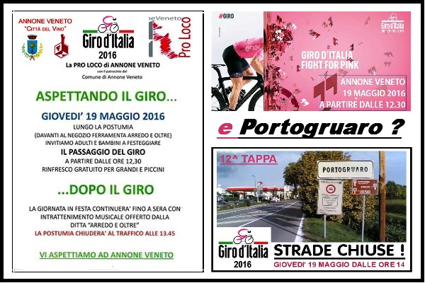 PORTOGRUARO: GIOVEDI’ 19 PASSA IL GIRO D’ITALIA – STRADE CHIUSE ! |