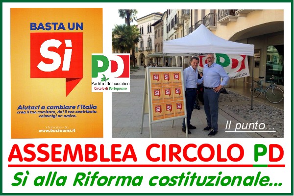 Il Circolo del PD di Portogruaro ha comunicato che favorirà nel nostro Comune la nascita di nuovi Comitati per il Sì; Comitati che saranno costituiti da cittadini di varie provenienze e che si riconoscono solo in un obiettivo primario e unico, che non hanno e non dovrebbero avere altri fini, se non l’informazione e la positiva affermazione delle ragioni del Sì alla Riforma costituzionale.