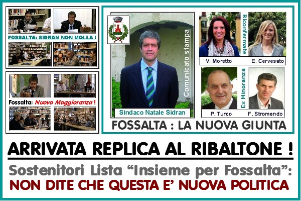 l Sindaco ha ritenuto che non fosse più suo impegno mantenere l’unità della Lista Insieme per Fossalta (lista che lo ha portato ad essere Primo cittadino), ma che la sua posizione di Sindaco lo autorizzasse a cercare una qualsiasi maggioranza.