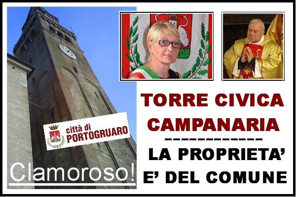 Ora, alla luce di quanto sopra, per quanto io non sia un tecnico in materia, mi sembra che si possa dire che la proprietà della Torre Civica Campanaria sita a fianco del Duomo di San’Andrea, sia del Comune di Portogruaro, con buona pace del sindaco Maria Teresa Senatore, altre considerazioni dopo le attese controdeduzioni, se ci saranno…