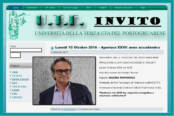 La conferenza inaugurale sarà tenuta dall’ingegner Valerio Pontarolo, presidente del Polo Tecnologico di Pordenone e dell’Associazione Nazionale del Costruttori Edili, sezione del Friuli Venezia Giulia. Detentore di ben 23 brevetti, di cui quattro mondiali e cinque europei, tutti in produzione, l’ingegner Pontarolo porterà la sua concreta esperienza nel settore delle costruzioni antisismiche e del risparmio energetica, parlando sul tema “Costruire oggi”.