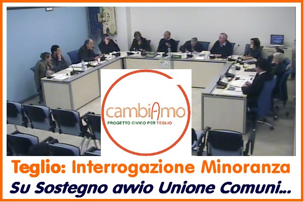 NOTA “Interrogazione che alla luce dello scioglimento dell’Unione dei Comuni di Fossalta di Portogruaro e Teglio Veneto, pone alcuni importanti interrogativi non solo sul futuro di Teglio Veneto, ma anche sui futuri assetti amministrativi del portogruarese”.