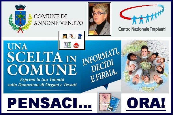 Ha preso  il via lunedì 24 ottobre la Campagna informativa che il Comune di Annone Veneto ha predisposto per l’espressione di volontà della donazione di organi e tessuti.