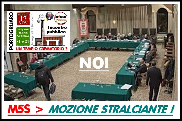 Prima si presenta una Mozione che approva lo Studio di Fattibilità per la costruzione di un Tempio Crematorio a Portogruaro (clicca qui), un mese dopo si presenta una seconda Mozione per chiedere lo stralcio dell’Opera inserita nel Piano Triennale (clicca qui), c’è della contraddizione in questo agire del Movimento 5 Stelle, anche se il consigliere Claudio Fagotto nel penultimo Consiglio comunale ha dato voto favorevole ad una analoga Mozione presentata dal gruppo “Centro Sinistra – Più Avanti Insieme”…