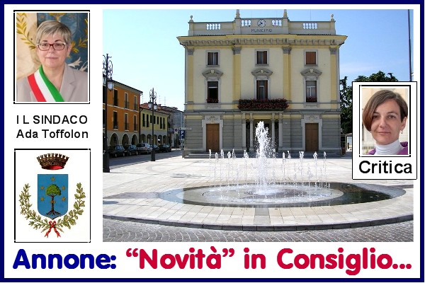 NOTA Nel Comunicato stampa che segue, Il sindaco Ada Toffolon accusa la Minoranza di essere presente con un Consigliere su quattro, non si fanno nomi, ma sono Elio Verona, Giovanni Trevisan e Giada Paludetto, mentre la “superstite” Nicoletta Bondi, ha fatto scena muta su cose importanti, intervenendo solo fuori luogo e con riferimenti personali di bassa lega, questo ovviamente a parere del primo cittadino di Annone Veneto… G.B.