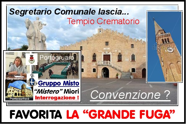 Allora cerchiamo di dare un senso a quella che io ho chiamato la “GRANDE FUGA”, perché ne ha tutte le caratteristiche, ultimamente alcune decisioni del Segretario comunale Miori sono state “contestate” dalla Minoranza, come quella di avere taciuto o non ben comunicato il suo impiego anche a Portobuffolè, non esternandolo nemmeno durante la discussione in Consiglio prima della Votazione per la Convenzione, e neppure il Sindaco Senatore ha aperto bocca, benché rispondendo ad una specifica interrogazione del Gruppo Misto, ha detto che sapeva che prestava servizio anche a Portobuffolè (clicca qui), fatto che io trovo gravissimo, non solo per la poca trasparenza, ma perché ha anche “falsato” la votazione stessa !