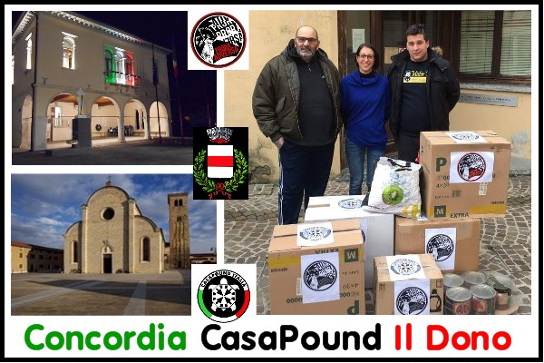 Ma il Comunicato stampa di Tino Bozza, responsabile di CasaPound Italia locale (clicca qui), parla chiaro, c’è un Accordo in questo senso con i Servizi Sociali del Comune di Concordia , con prospettive future di collaborazione per azioni benefiche similari, con tanto di foto assieme alla Dirigente comunale per la consegna dei prodotti alimentari… (clicca qui)