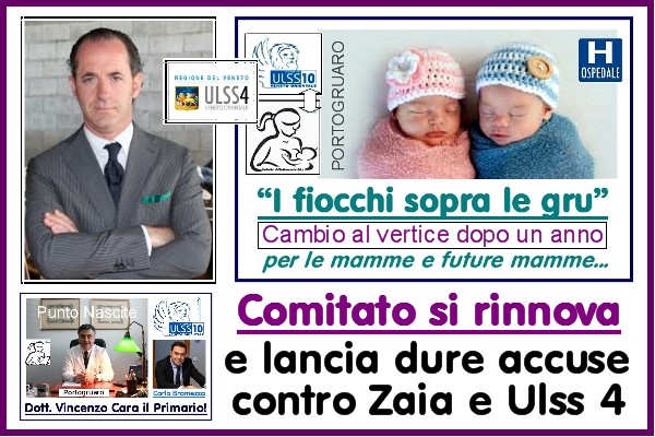 Zaia ha detto che verrà riaperto il punto nascite a Portogruaro, quando? Forse il dg Carlo Bramezza non è all’altezza del compito affidatogli? O è colpa del dott. Cara? Insisteremo per scoprirlo. Certo non sarebbe compito nostro, ci sono i politici per questo, perchè non lo fanno? Insisteremo per scoprire anche questo, con l’appoggio di tutte le Associazioni e dei cittadini.”
