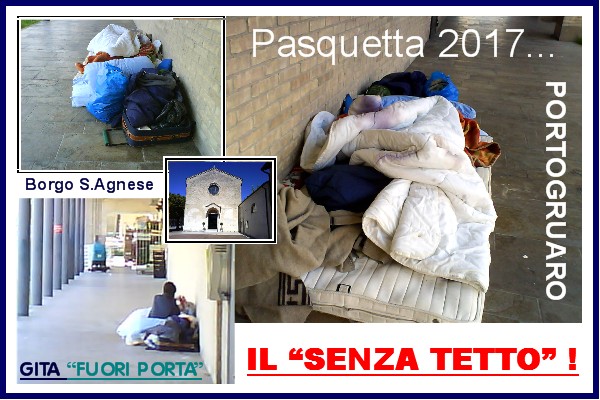 Concludo dicendo che a Pasquetta la gita fuori porta è una tradizione ormai consolidata, e che fa girare l’economia, ma esistono anche coloro che il “fuori porta” lo vivono tutto l’anno, gente invisibile che abbiamo tutti i giorni sotto gli occhi, nel nostro piccolo anche a Portogruaro, possibile che non ci si possa fare niente, e che l’Amministrazione comunale non dica niente ? Speriamo che una soluzioni la si trovi, e non si veda più gente dormire sotto i porticati e rifugi di fortuna in pieno Centro Storico, come documentato nelle molte foto allegate, un minimo di vergogna e amore per la propria città, chi di dovere dovrebbe pur averlo…