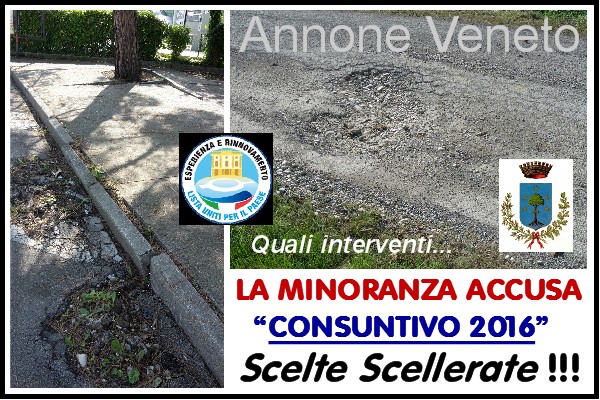 Anche lo scorso 2016 non siete andati oltre l’ordinaria amministrazione, che del resto viene svolta direttamente dagli uffici comunali. Disponevate di risorse finanziarie per attuare investimenti che non avete fatto. Ancora una volta è venuta meno quell’azione politica che la Giunta ed in particolar modo l’assessore al bilancio avrebbero dovuto esternare.