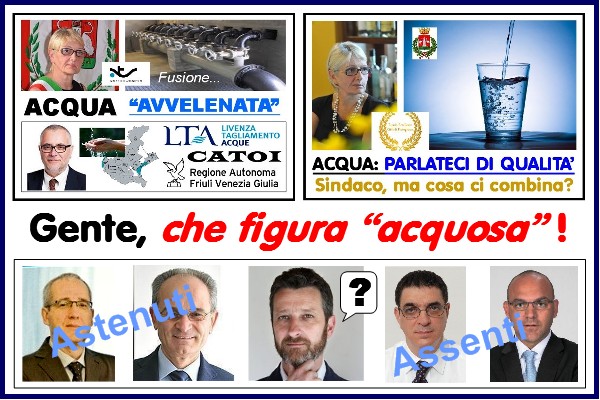 Non hanno fatto una bella figura nemmeno i sindaci Claudio Odorico di Concordia Sagittaria e Lepoldo Demo di Pramaggiore, che si sono astenuti (?!), e i sindaci Giacomo Gasparotto di Gruaro, che è pure presidente della Conferenza dei Sindaci e Andrea Tamai di Teglio Veneto, che non hanno partecipato al voto (?!) perché andati via prima per latri impegni, dunque assenti, tutti di area Centrodestra e molto vicini alla Senatore, il loro modo di agire mi è sembrato più politico che amministrativo, e l’ACQUA con dovrebbe essere “colorata”, in queste situazioni si vota sempre, Sì o No, non è tanto complicato, e sapendo di dovere andare via prima, si lascia comunque la propria dichiarazione di voto, questione di senso di responsabilità, che devono prendersi fino in fondo, e non tergiversare per “solidarietà politica” verso chi ha fatto solo “un enorme buco nell’acqua”, che non lo si chiude con questo tipo di atteggiamento…