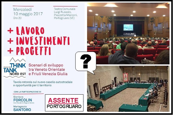 Anche la storia dell’ultimo Consiglio comunale convocato il 10 maggio (clicca qui), stesso giorno dell’importantissimo Convegno sul casello di “Alvisopoli” (clicca qui), dove erano presenti i sindaci Gasparotto di Gruaro, Sidran di Fossalta e Codognotto di San Michele /Bibione, e guarda caso mancava solo il Sindaco di Portogruaro, colpevolmente dico io, ma lo ha sottolineato anche il Vicegovernatore Forcolin, come riportato nella stampa locale (clicca qui).